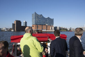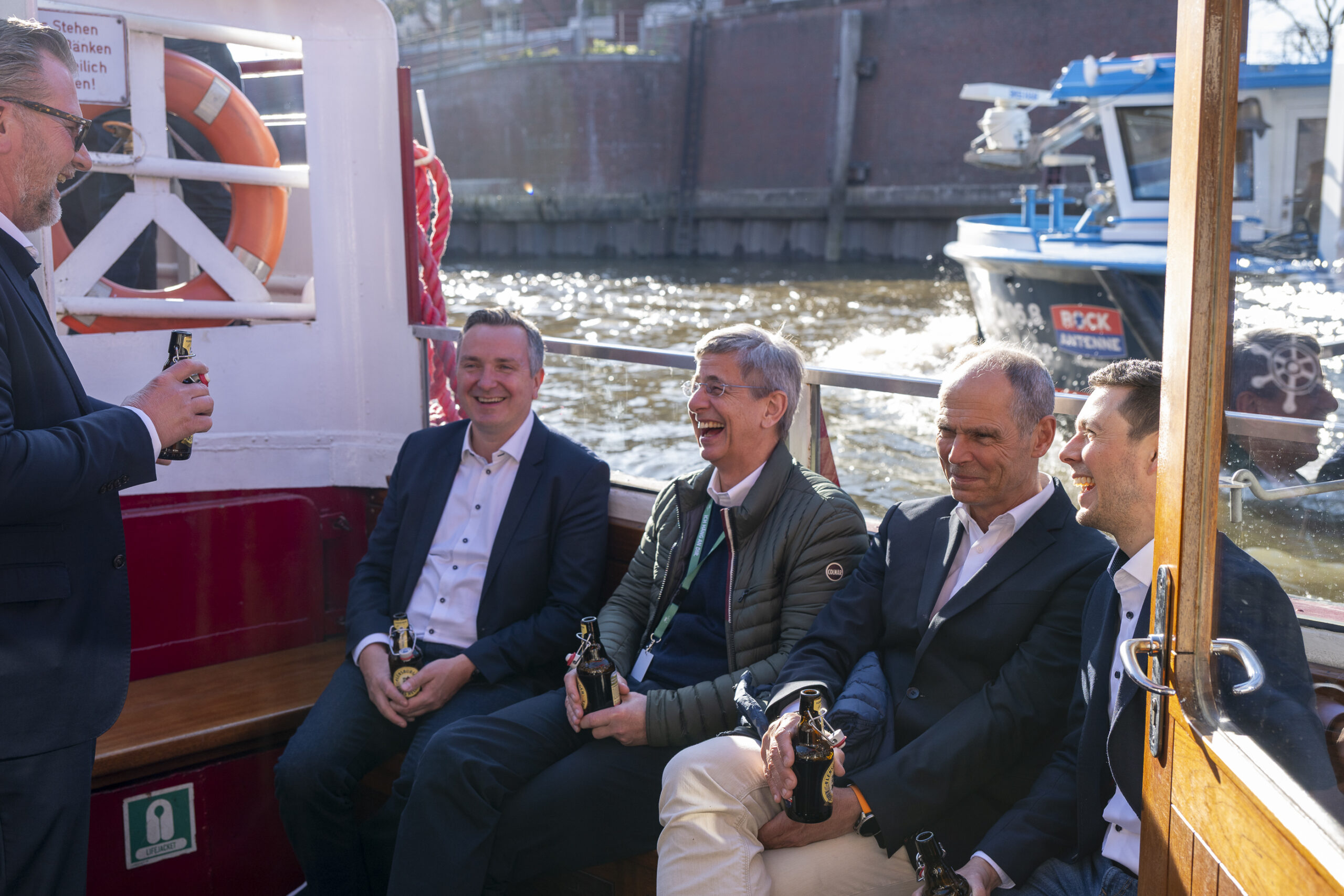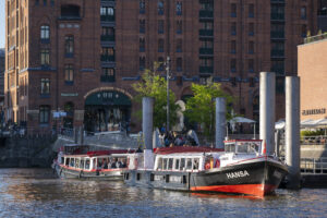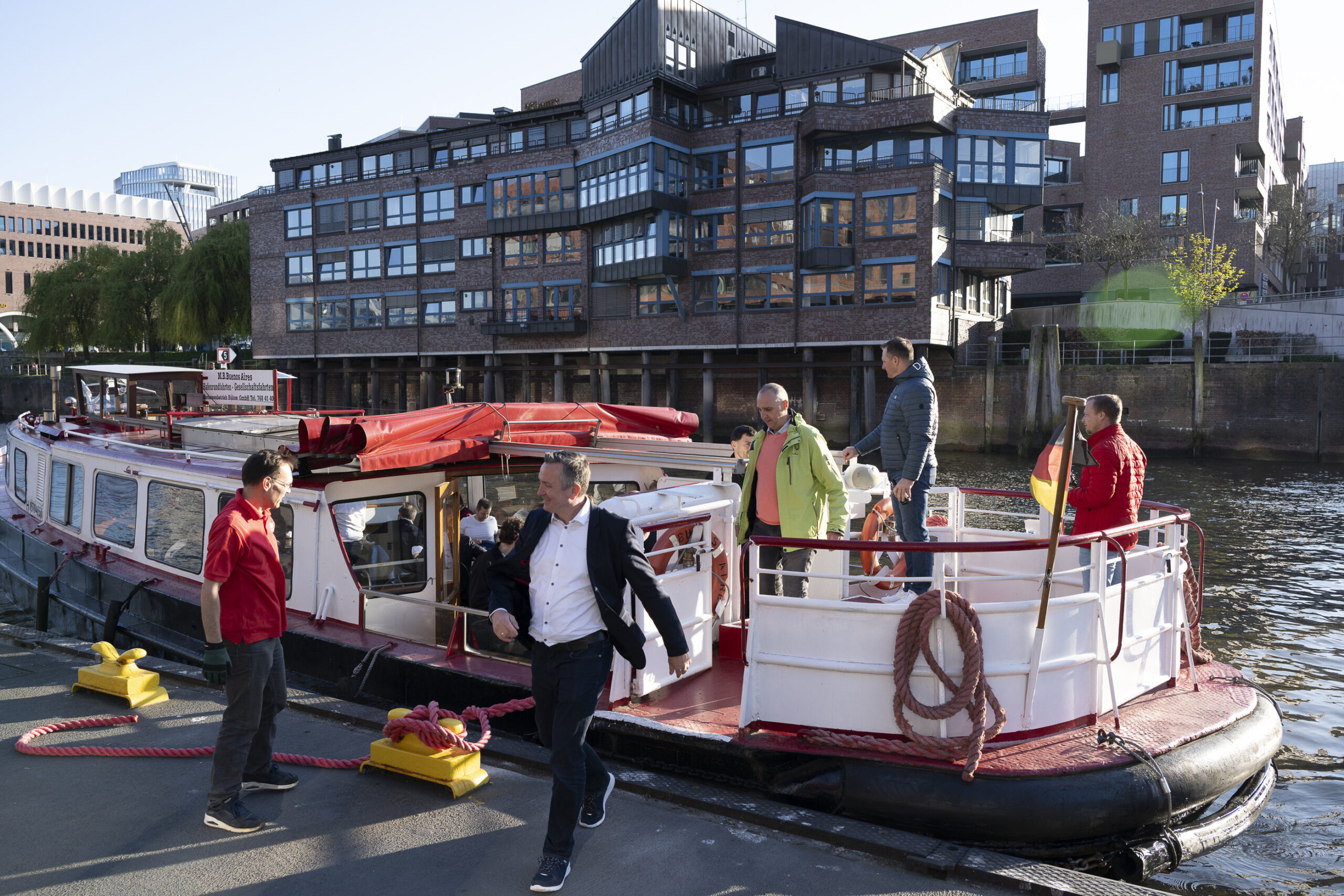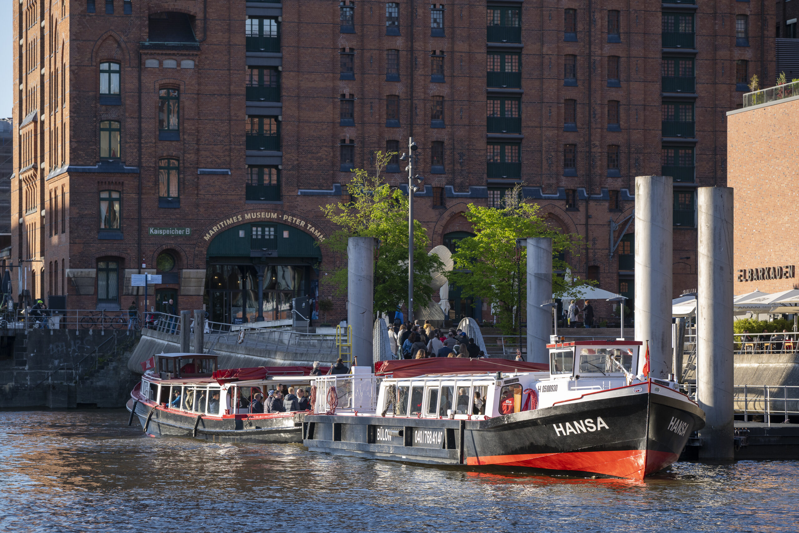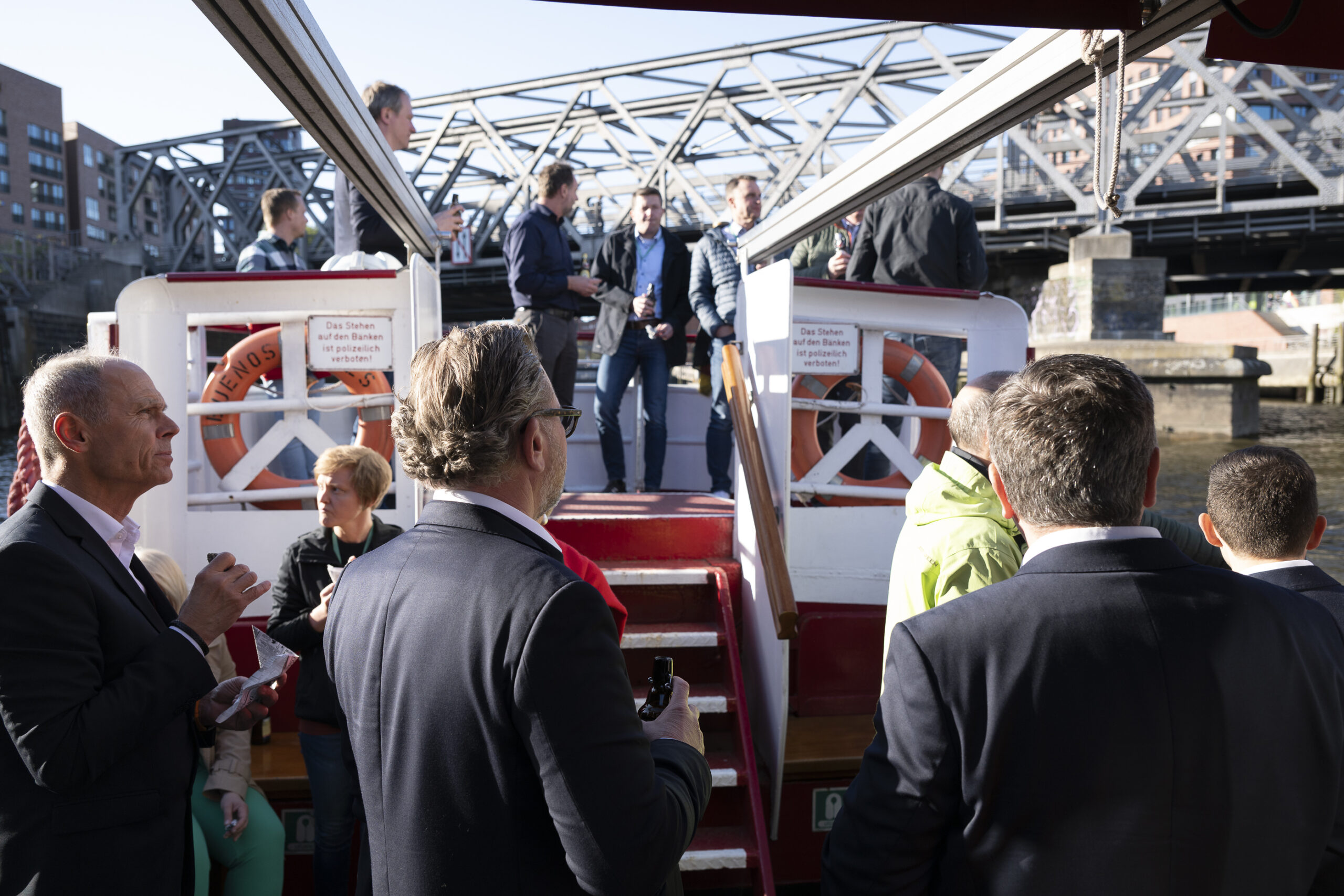 Abfahrt mit Barkassen ab dem Anleger HPA in der Speicherstadt und Aperitif an Bord